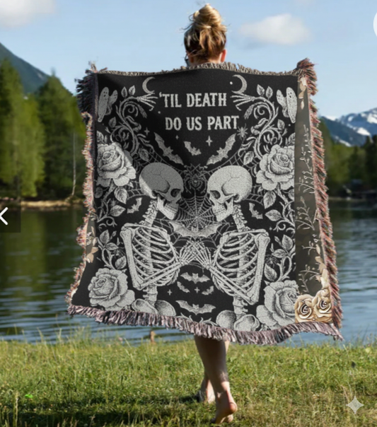 Skeleton Lovers Woven Blanket |Gothic Wedding Blanket | Halloween Blanket